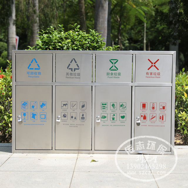 吉林户外街道方形 4 分类不锈钢垃圾箱采用 201#,202#,304#优质不锈钢材料模压成型,坚固耐用,不易破损;耐火安全,抗高低温,适合各种恶劣气候条件;金属亮泽,高雅美观,广泛适用于各种机场、商场高档场所;内外表面光洁,减少垃圾残留,易于清洁;配置镀锌板内桶,便于垃圾清倒;激光切割开料,尺寸精准,投口无缝焊接成型,打磨抛光处理圆滑不割手,传志环保不锈钢垃圾桶制作师傅有着多年经验的熟手,每一道环节工艺成熟,质量可靠,确保客户如期交付验收。